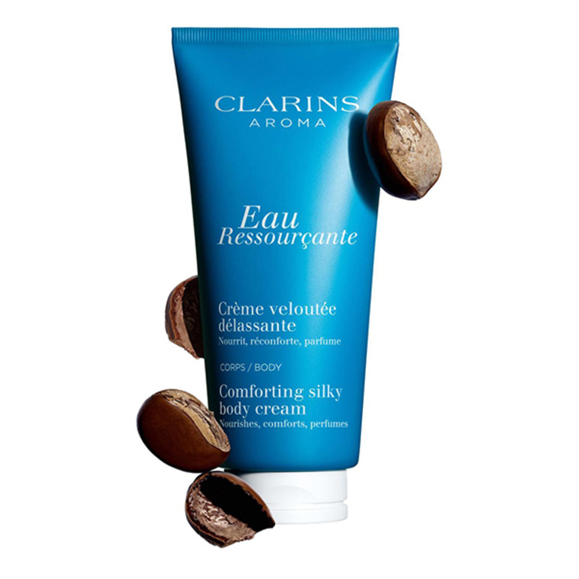 Te invitam sa descoperi secretul pentru o piele mai fina si mai delicata cu Clarins Aroma Eau Ressourcante Body Cream. Acesta iti lasa pielea hidratata si parfumata dupa fiecare utilizare. Hibiscus, Robinia, Sarsaparilla si alte uleiuri esentiale sunt cuprinse in aceasta crema de corp ce iti provoaca o stare de relaxare. Este recomandata pentru toate tipurile de piele.