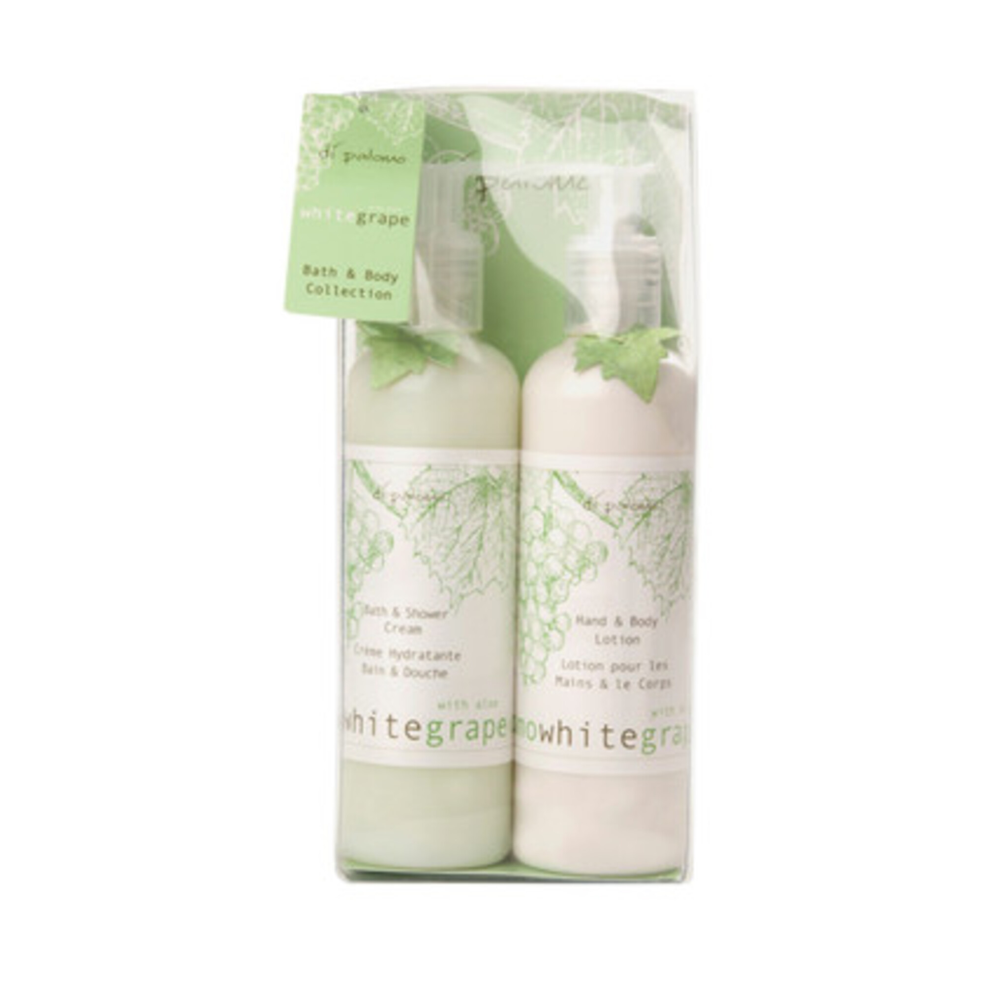 Set de baie cu extract de struguri albi si aloe vera ce contine: 1 gel de dus (250 ml) si 1 lotiune pentru corp (250 ml).
