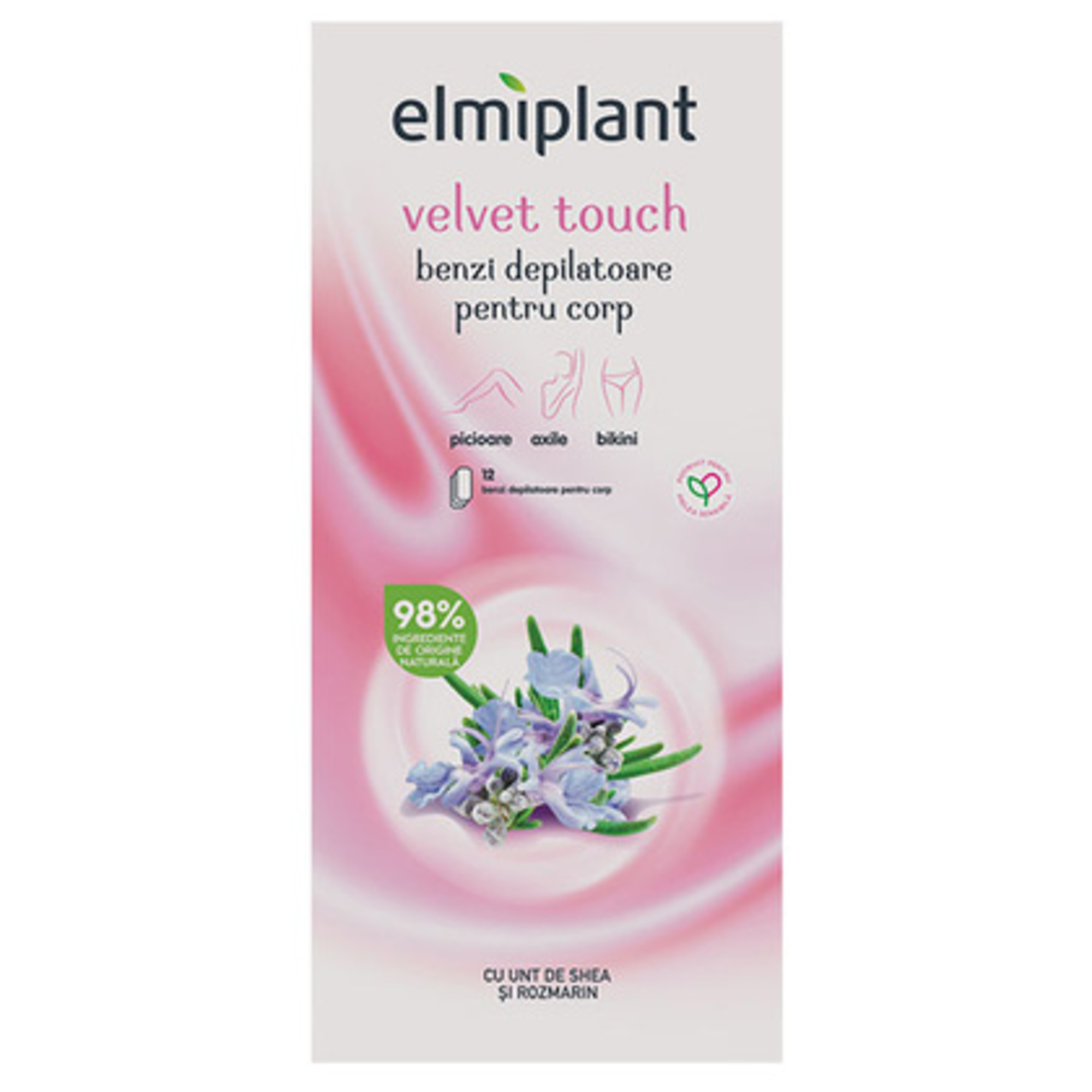 Benzile depilatoare elmiplant Velvet Touch pentru corp asigură o depilare rapidă, ușoară și eficientă, având grijă de pielea ta! Formula este îmbogățită cu Extract de Unt de Shea, bogat în acizi grasi esențiali și Extract de Rozmarin, care are un conținut ridicat de ingrediente antioxidante. Benzile elmiplant asigură o depilare perfectă, cu rezultate ce se mențin până la 4 săptămâni pentru o piele fină și catifelată.