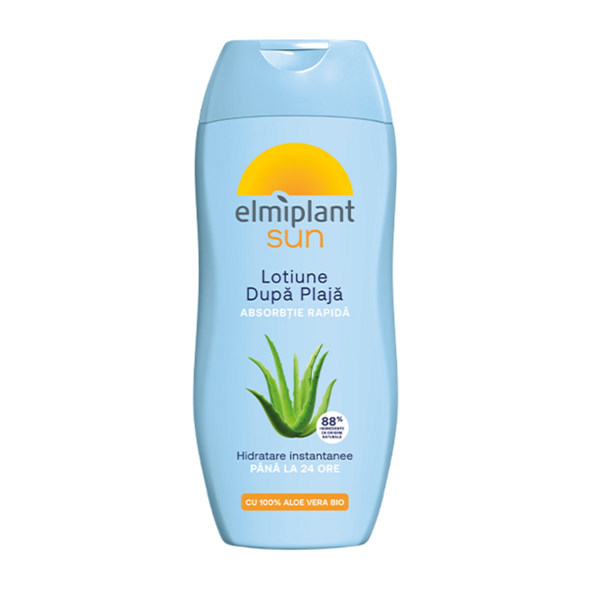 Oferă pielii tale îngrijirea necesara după expunerea la soare cu Loțiunea după plaja elmiplant ce conține o combinație unica de ingrediente naturale hidratante și calmante. Formula să este îmbunătățită cu Pantenol ce ajuta la refacerea nivelului de hidratare a pielii și Extract de Aloe Vera 100% ce calmează pielea după expunerea la soare. De asemenea, conține HYDRO NUTRIENT 24H, un complex hidratant avansat, ce oferă hidratare imediata și o menține până la 24H și se absoarbe rapid, în timp ce racoreşte şi calmează pielea, asigurând un bronz de lungă durată.