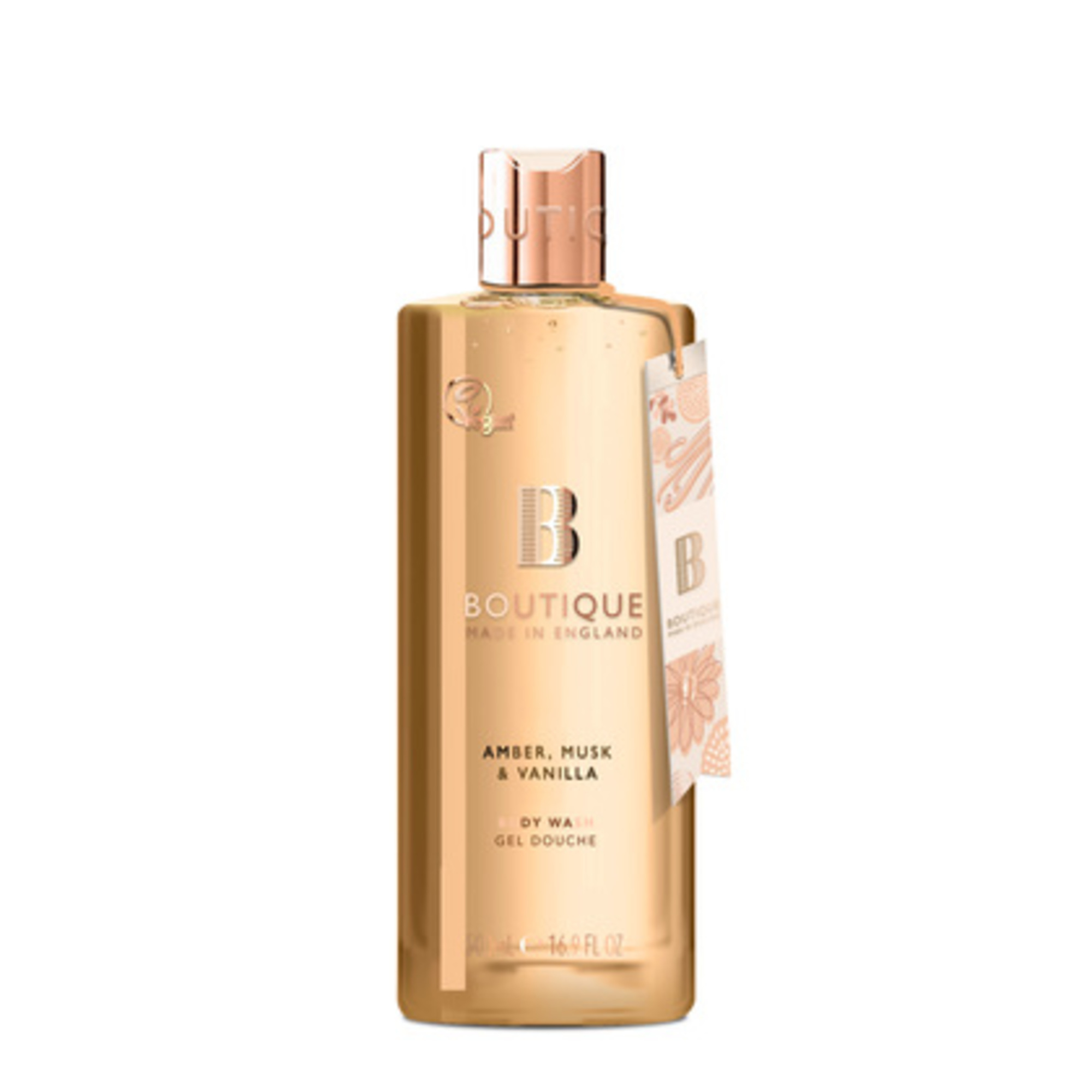 Gelul de duș Amber Musk Vanilla îmbină parfumul cald și seducător de ambră și mosc cu notele dulci și reconfortante de vanilie. Formula sa curăță delicat pielea, lăsând-o moale, hidratată și învăluită într-o aromă irezistibilă, perfectă pentru momentele de relaxare și răsfăț