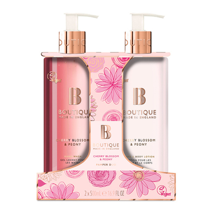 Setul de îngrijire Cherry Blossom Peony conține un săpun de mâini delicat și o loțiune de corp hidratantă, ambele cu un parfum floral rafinat de floare de cireș și bujor, pentru o senzație de prospețime și îngrijire. Ideal pentru o rutină de îngrijire a pielii, lăsându-vă pielea moale și delicat parfumată.