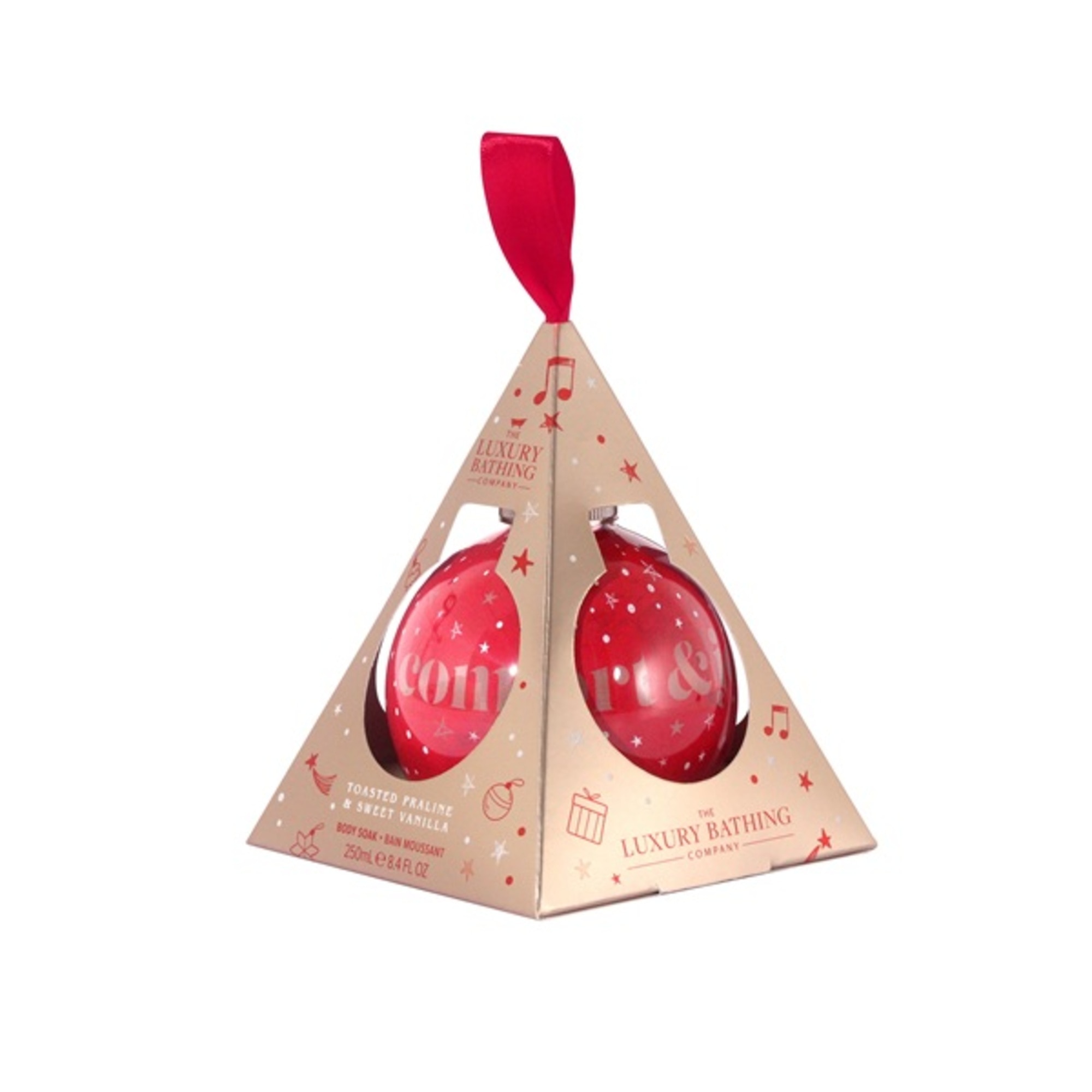 Aroma festivă supremă — Pralinele prăjite, cu note ușor de nuci, se îmbină cu Vanilia dulce pentru a crea o experiență de sărbătoare desăvârșită pentru simțuri.Conținut: Glob cu 250 ml Spumant de Baie.