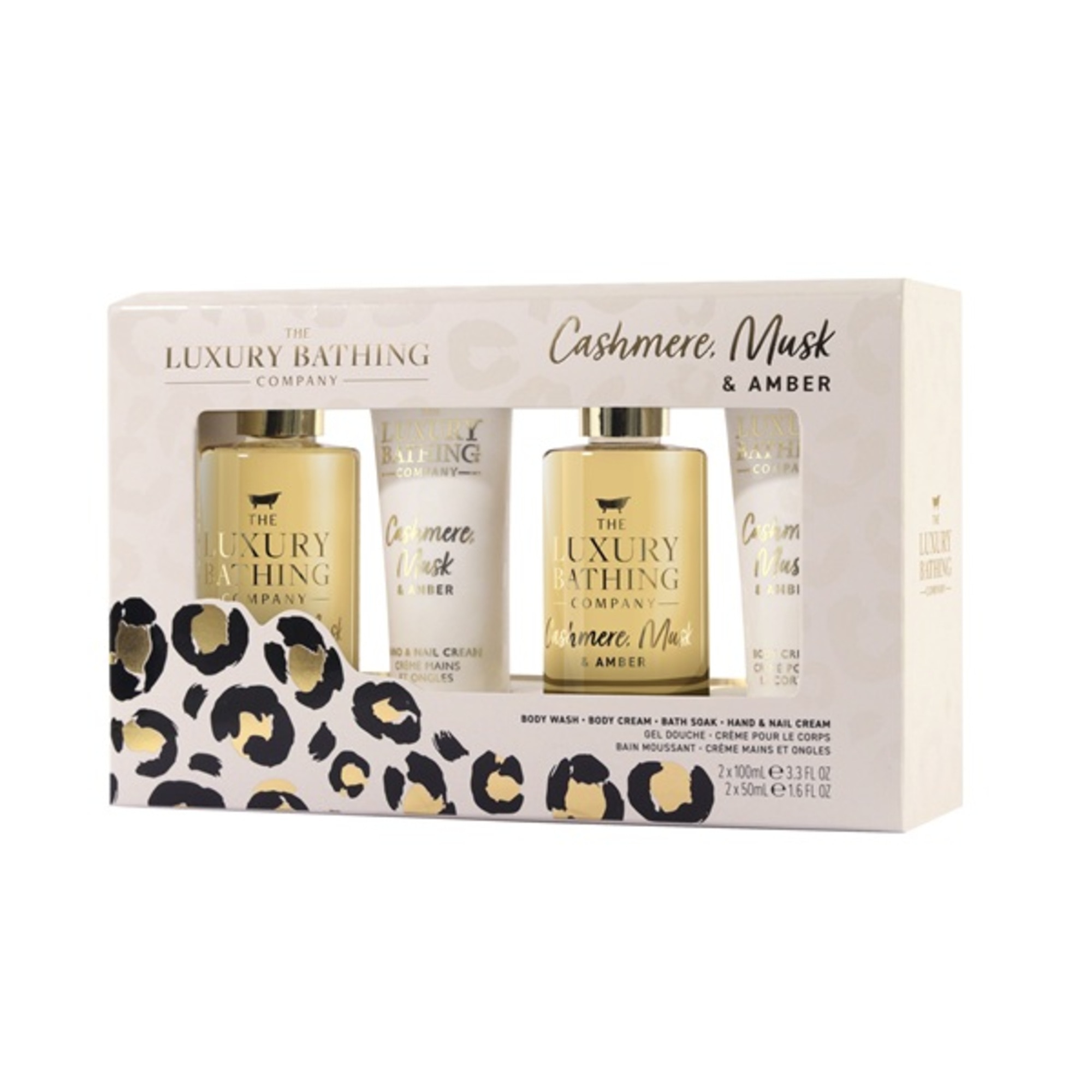 Conținut: Săruri de baie 100 ml, gel de duș 100 ml, cremă pentru mâini și unghii 50 ml și cremă de corp 50 ml.