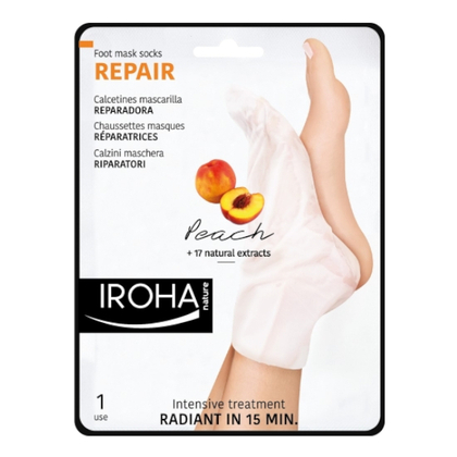 Masca-soseta pentru picioare si unghii cu efect de regenerare. Imbogatita cu serum din Piersica, extracte din 17 fructe si flori, Acid Salicilic, Urea si Vitamina E. Efect instant, rezultate profesionale in doar 15 minute.