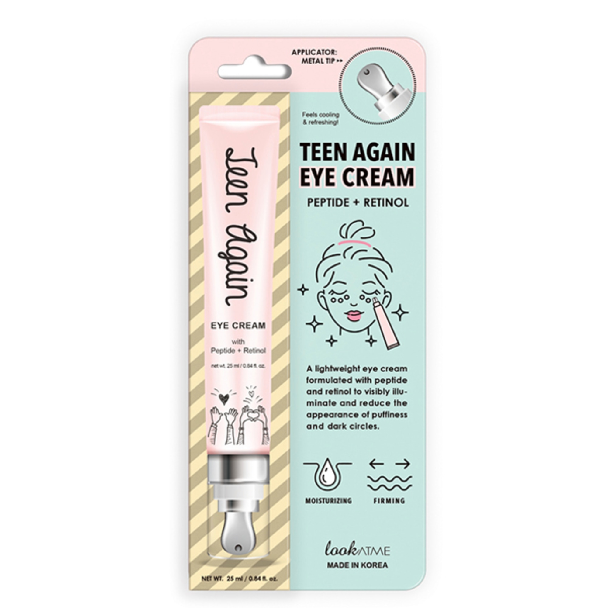 Crema pentru conturul ochilor formulată cu peptide și retinol. Include un aplicator metalic la vârf.