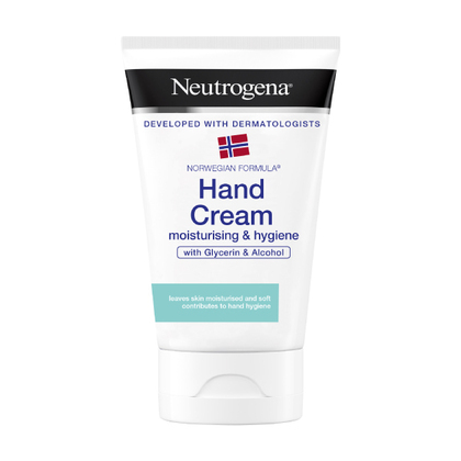 Crema hidratantă și igienizantă pentru mâini Neutrogena® combină expertiza formulei norvegiene în hidratarea mâinilor cu un beneficiu igienic. Conține glicerină derivată natural, renumită pentru beneficiile sale hidratante pe termen lung. Îmbogățită cu alcool, oferă o senzație imediată de prospețime contribuind la igiena mâinilor.