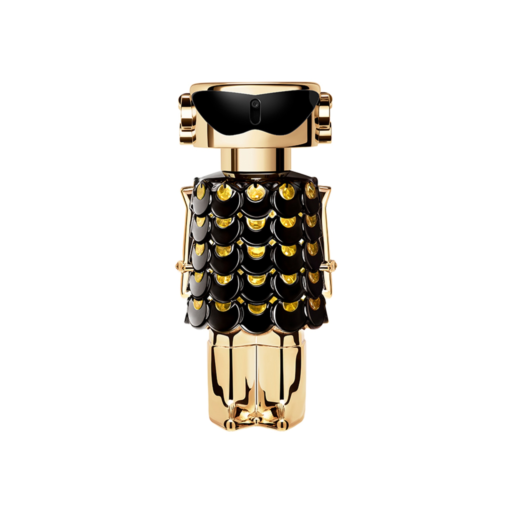 Sticla FAME Parfum este un obiect seducător al dorinței. La fel de prețioasă ca bijuteriile, iconică ca întotdeauna: nuanța aurie a sticlei FAME este restilizată într-o rochie neagră lucioasă pentru petrecăreața pariziană supremă.