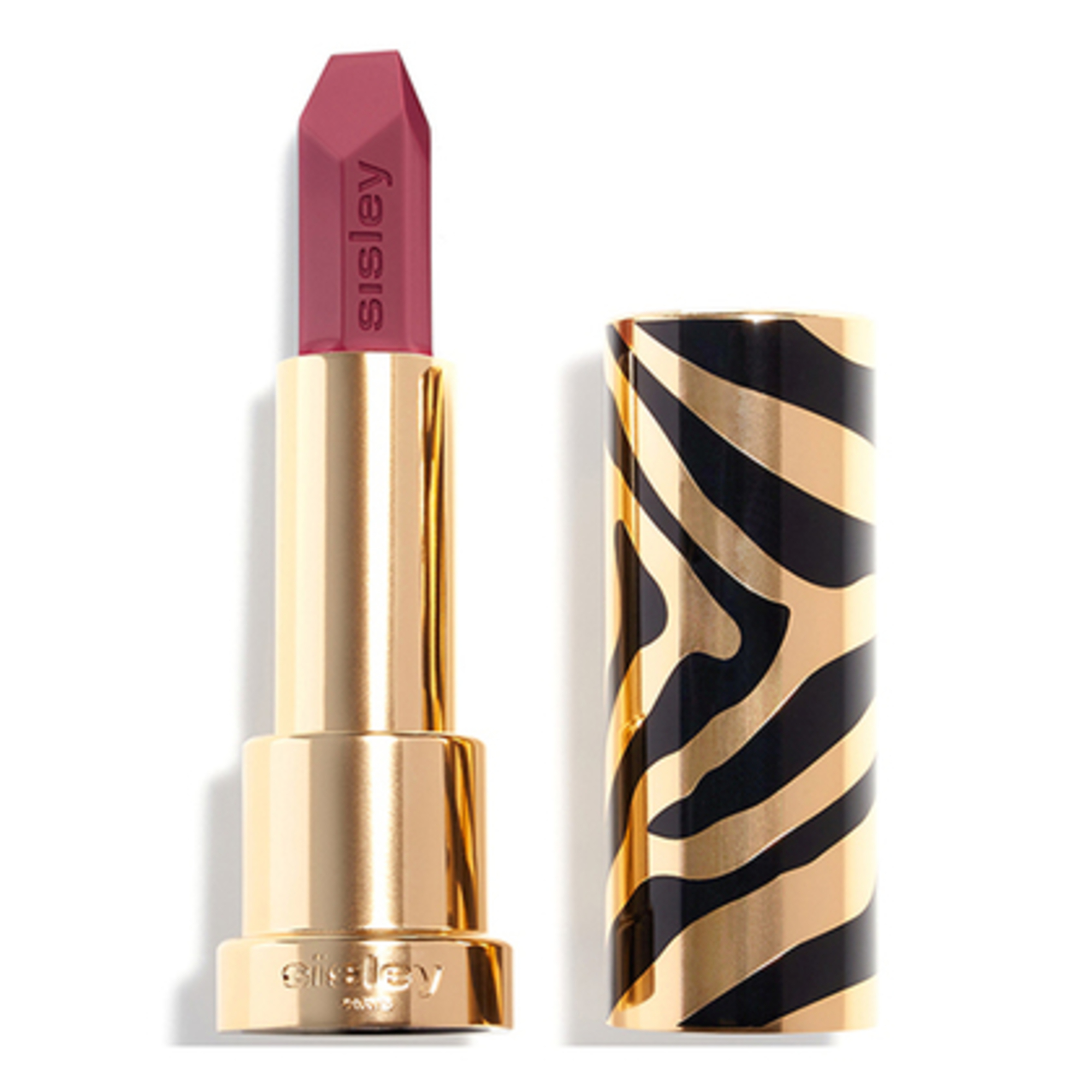 Phyto-Rouge Velvet vine într-o carcasă mată de culoare aurie cu dungi negre de zebră și are o mină fațetată pentru o aplicare ușoară și precisă.