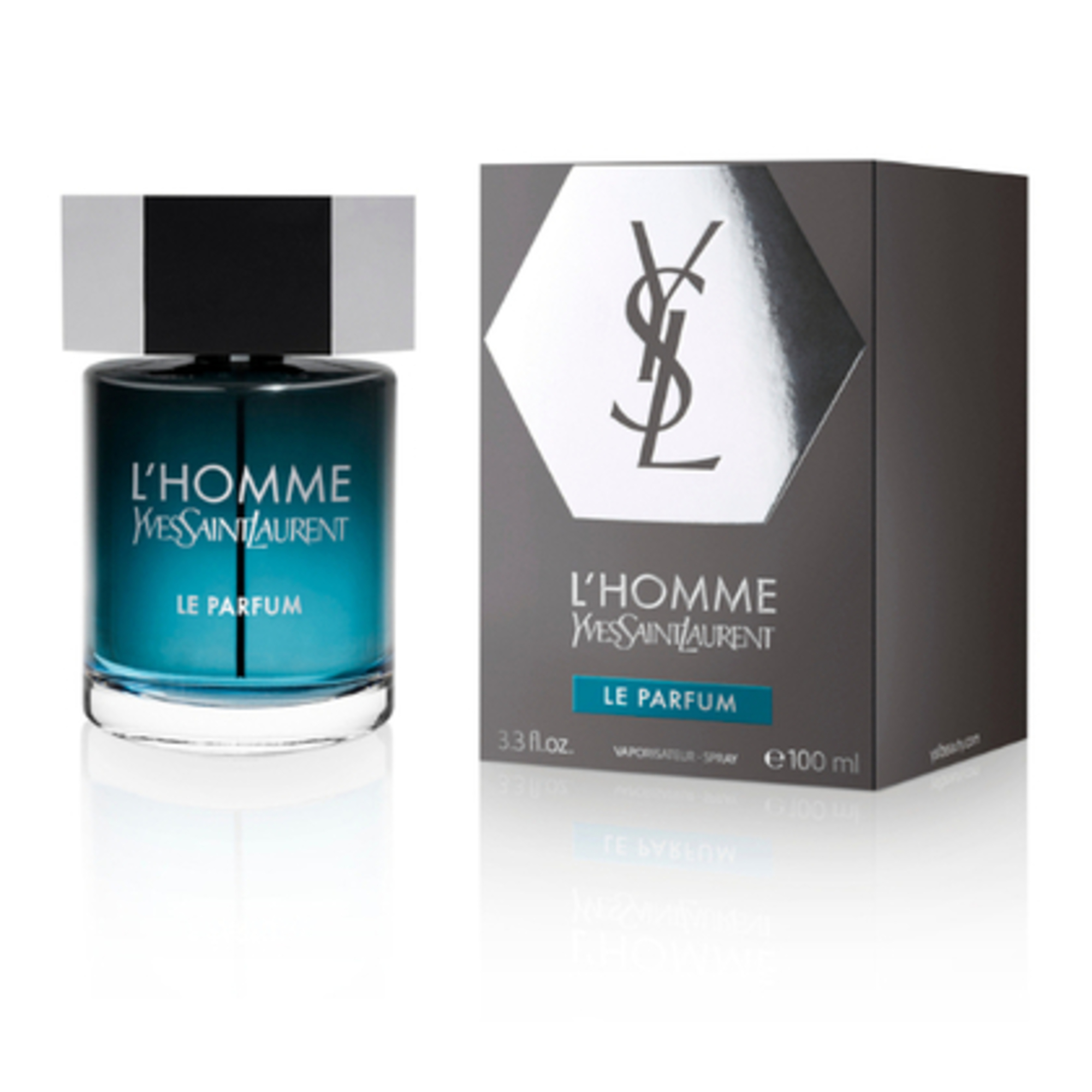 Sticla parfumului L'Homme Apa de Parfum de Yves Saint Laurent amintește de lumea contrastantă a omului modern.